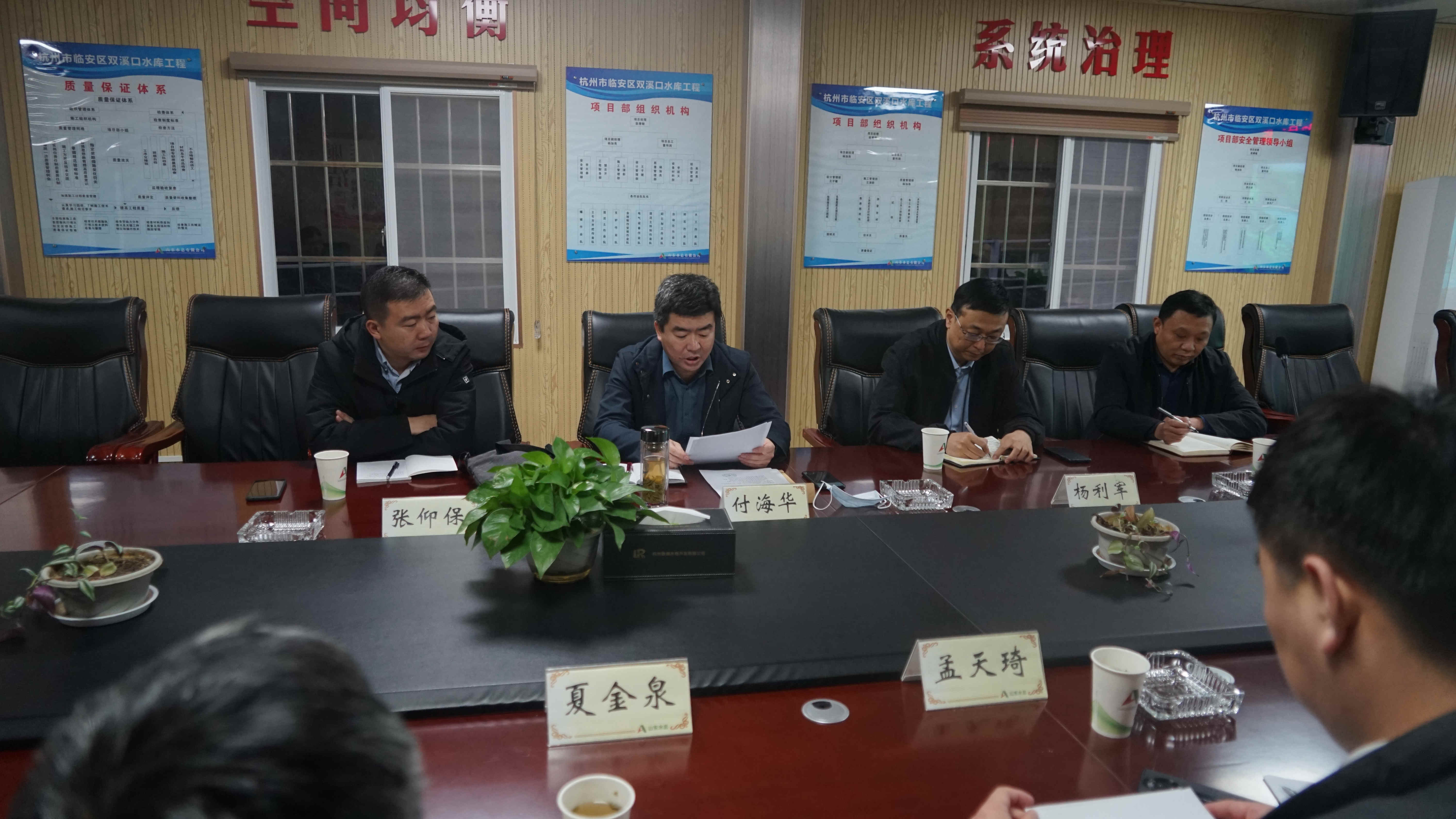 12月9日,公司副總經(jīng)理付海華、總會(huì)計(jì)師楊利軍一行到杭州市臨安區(qū)雙溪口水庫工程調(diào)研指導(dǎo)工作。魯潤公司副總經(jīng)理孟天琦、總工程師夏金泉、六公司副總經(jīng)理?xiàng)罴恿技绊?xiàng)目相關(guān)人員參加會(huì)議。