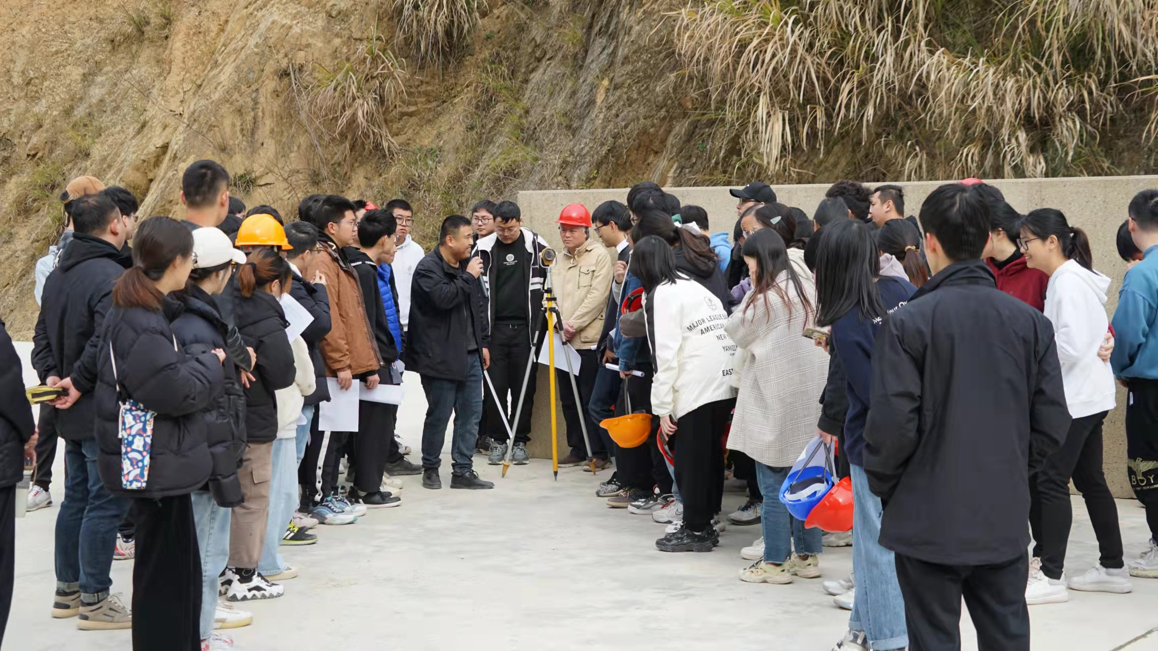 杭州魯潤公司副總工程師張仰保組織各參建單位主要管理人員給學生們作了工程建設報告、安全知識宣講。并帶領同學們現場觀摩學習,對大壩的澆筑方式、引水洞內部結構、發電廠房建造、工地測量放樣、現場試驗室等方面進行了專業、詳細的講解。