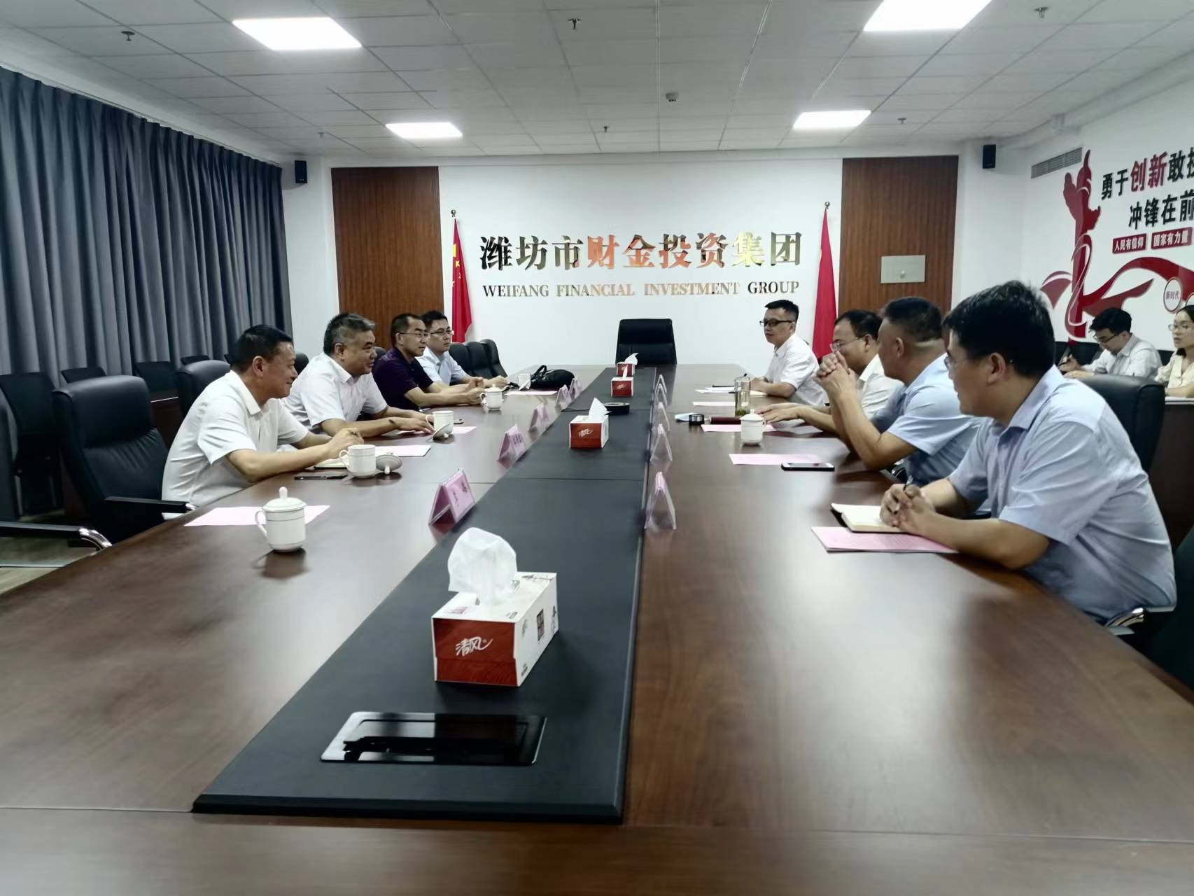 公司黨委書記、董事長(zhǎng)劉深遠(yuǎn)一行到濰坊市財(cái)金投資集團(tuán)開展商務(wù)洽談
