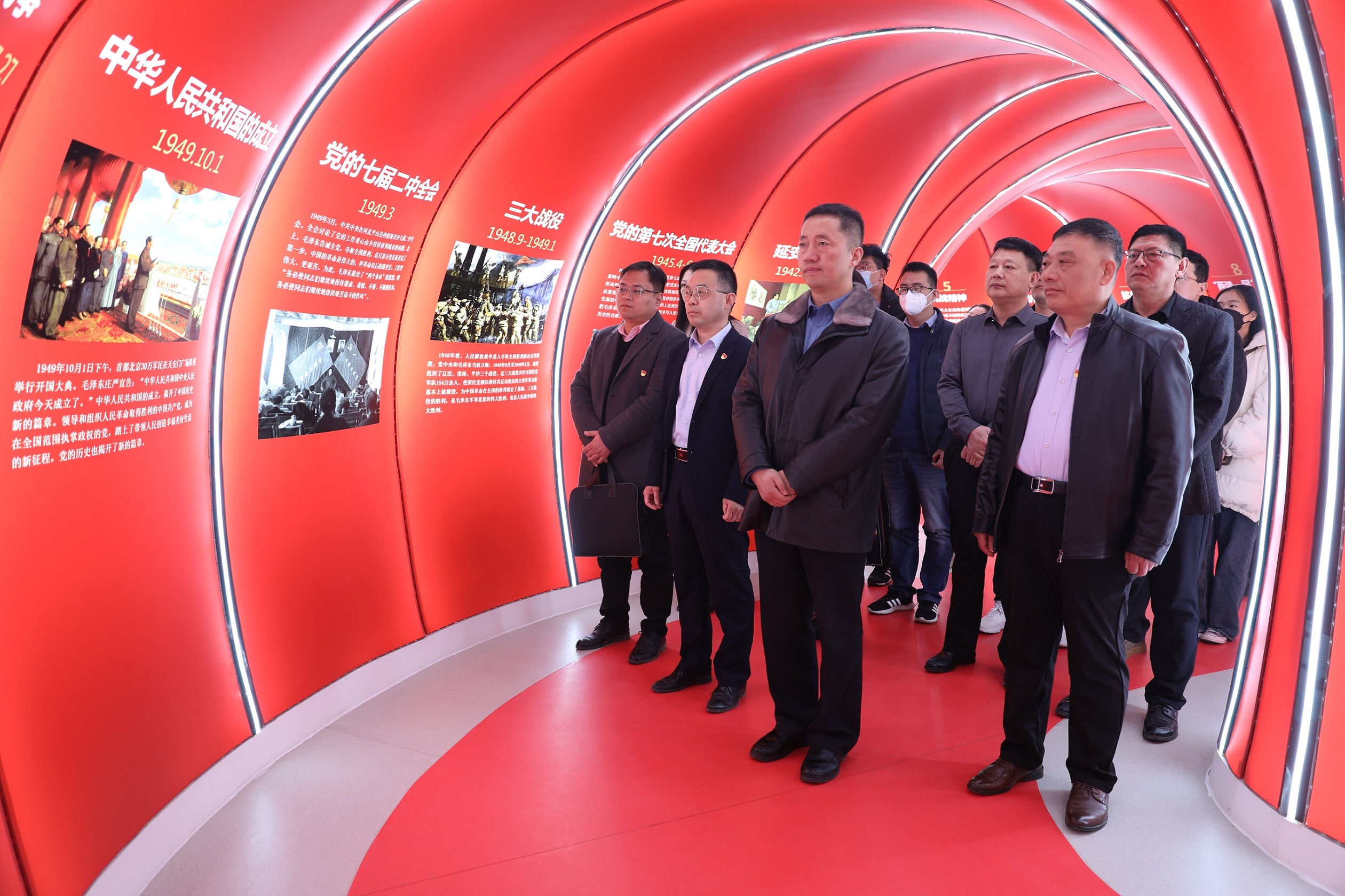 簽約儀式結束后,雙方開展第一次共建活動,黨員們一起穿越“初心隧道”,詳細了解中國共產黨成立的歷史背景,在回顧建黨歷史中感受老一輩共產黨人為追求真理不懈奮斗的激情歲月。在紅色經典誦讀環節,黨員干部齊聲誦讀紅色經典,從紅色經典書籍中汲取知識、培根鑄魂。