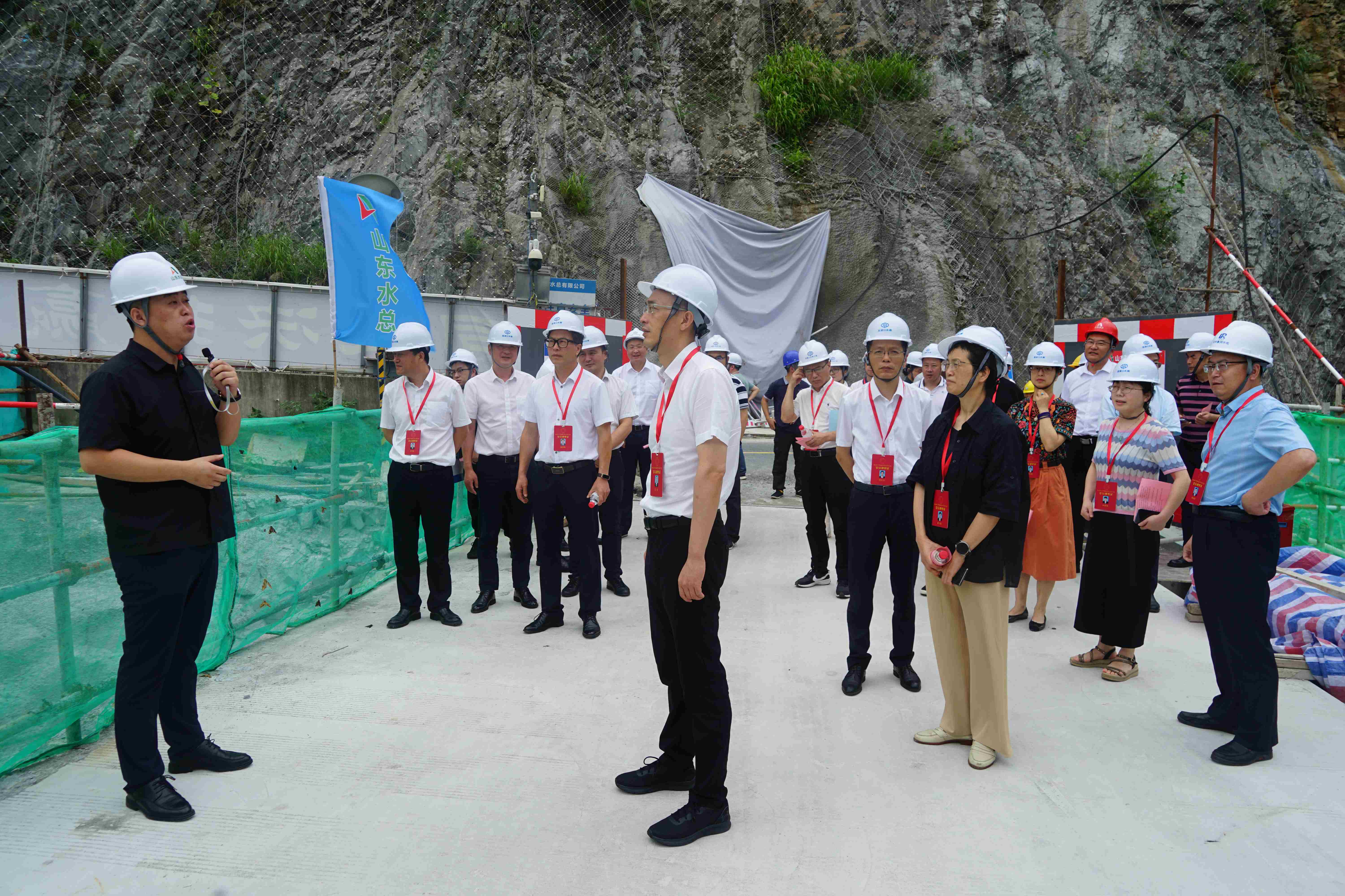 調研組一行來到雙溪口水庫工程重力拱壩施工現場,參觀雙溪口水庫的工程面貌,聽取魯潤公司負責人對雙溪口水庫建設情況的匯報。區政協主席團對雙溪口水庫工程的建設情況給予充分肯定,并強調工程各參建單位一要緊盯時間節點推進項目建設,確保項目有序推進;二要緊繃安全弦,保障項目安全生產,嚴防出現安全事故;三要加強部門溝通協調,合力推進項目建設。