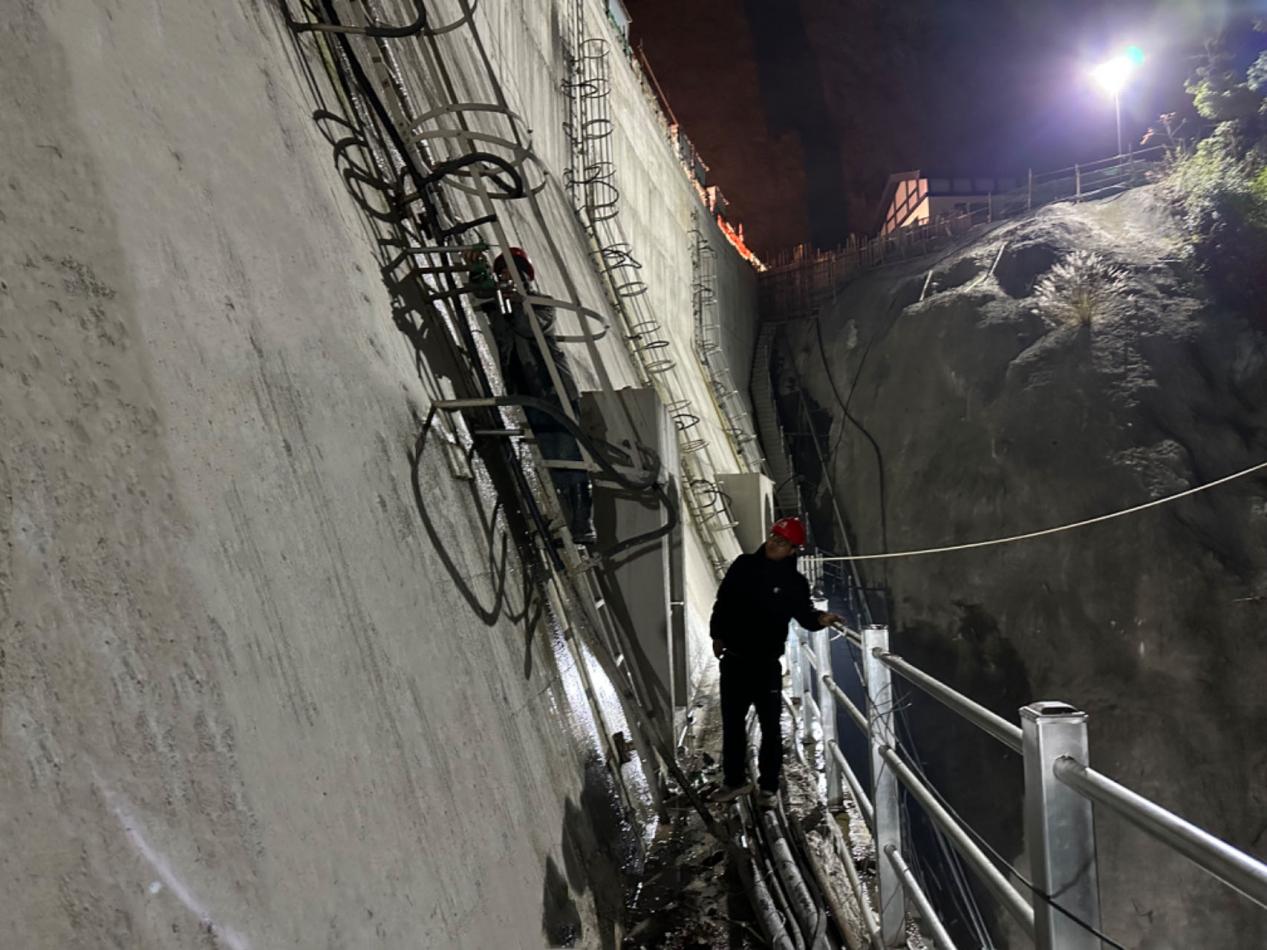 “屏漿時間已到,七層12灌區(qū)灌漿結(jié)束”,隨著對講機(jī)里傳來嘹亮的指令聲,杭州市臨安區(qū)雙溪口水庫工程封拱灌漿工作全部順利結(jié)束。雙溪口水庫工程常態(tài)混凝土重力拱壩壩高74.5米,封拱灌漿共七層劃分68個灌區(qū)。封拱灌漿工作于2023年2月11日順利啟動,至3月底完成一層~四層灌漿,2023年12月5日~12月28日完成五層~七層灌漿。在灌漿施工過程中壩體溫度、橫縫張開度、混凝土齡期、蓋重、相鄰灌區(qū)灌漿間隔時間等重要技術(shù)指標(biāo)均符合設(shè)計及規(guī)范要求,經(jīng)自檢、抽檢、平行檢測質(zhì)量檢查全部合格。