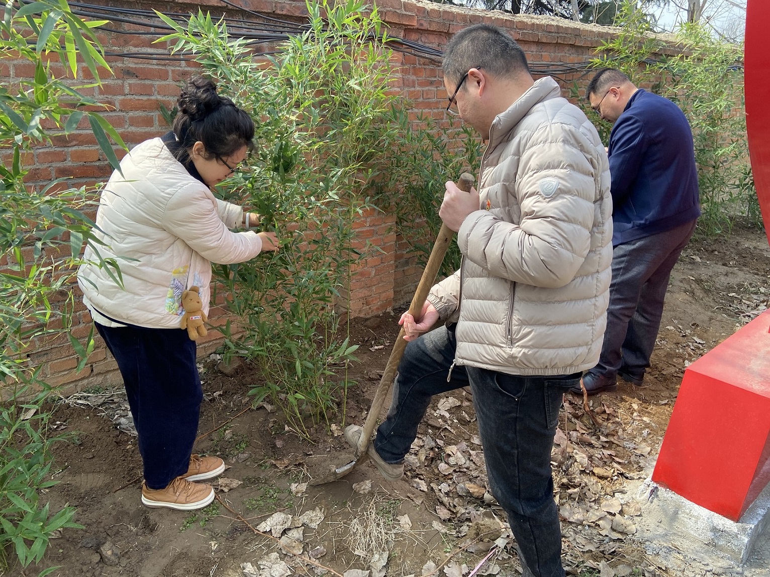 曲阜駐地黨支部黨員、入黨積極分子熱情昂揚,大家分工協作,配合默契,揮鍬鏟土、扶樹填坑、踏土夯苗、培土澆水,道道工序規范嚴格,認真細致地栽種每一棵樹苗,經過辛勤勞作,為文化長廊增添了濃濃綠意。