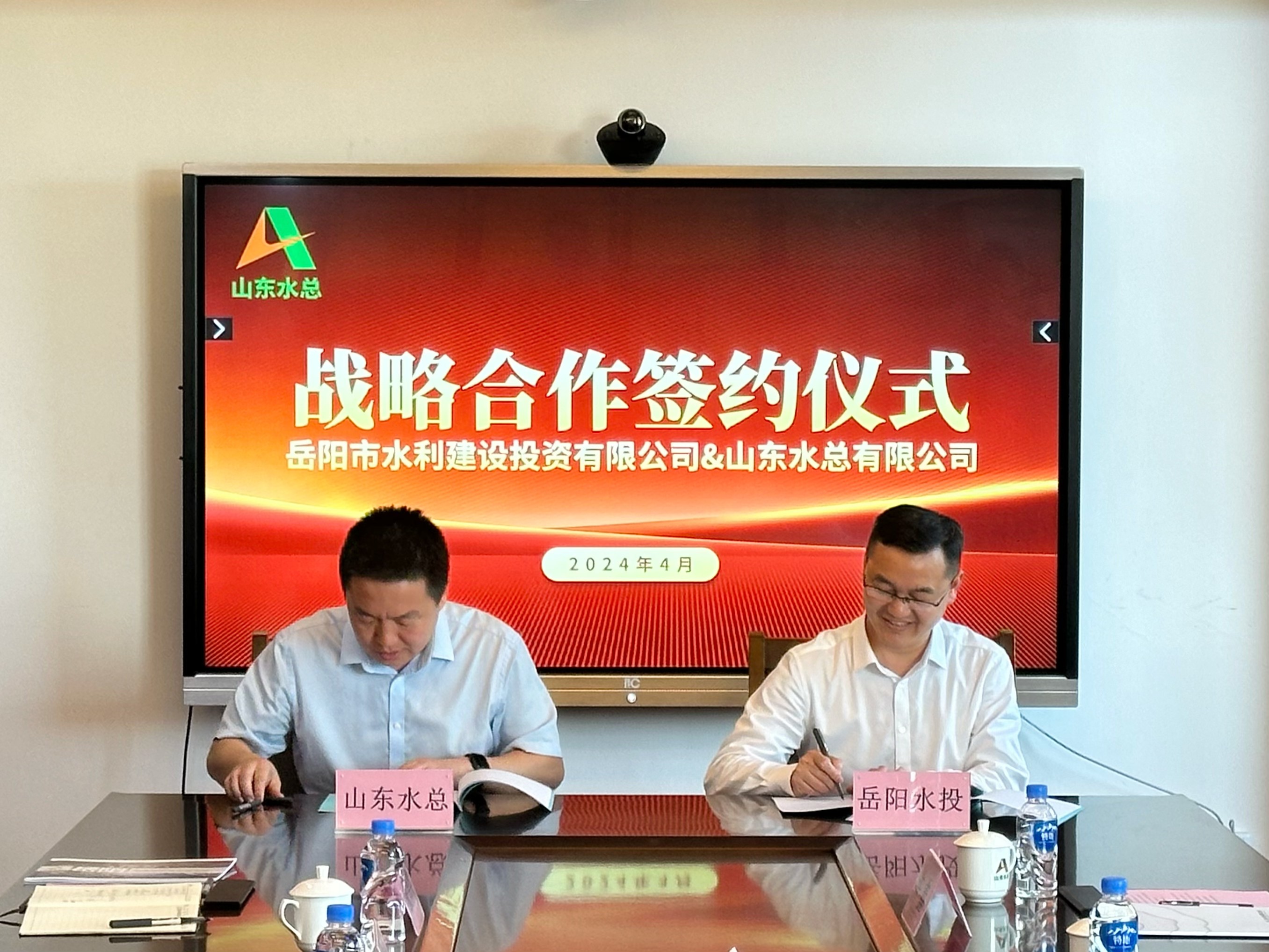 4月25日下午,岳陽市水利建設投資有限公司和山東水總有限公司戰(zhàn)略合作簽約儀式在公司總部舉行。岳陽水投公司總經(jīng)理劉紹鋒、副總經(jīng)理張威,山東水總公司黨委副書記、董事、總經(jīng)理靳文碩,黨委委員、副總經(jīng)理李光市等出席簽約儀式。