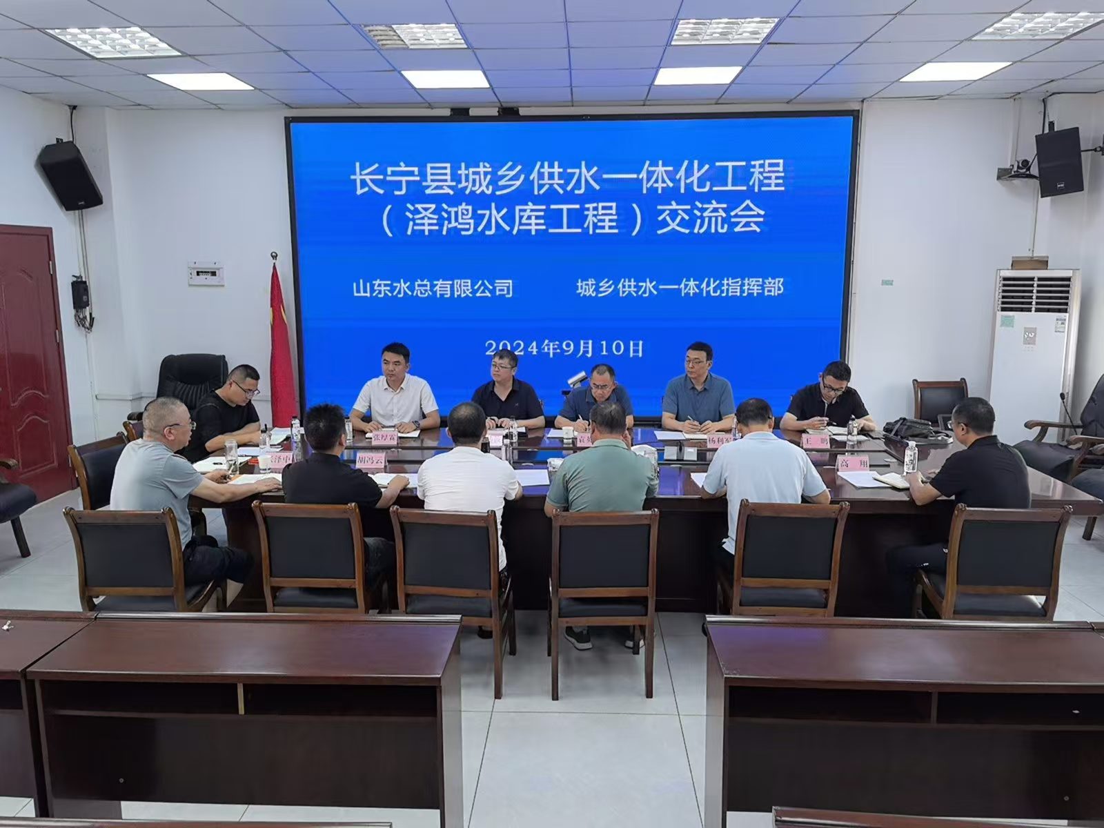 9月10日,公司黨委委員、副總經(jīng)理袁英杰,總會計師楊利軍等一行到四川省長寧縣水利局座談交流。長寧縣人大常委會副主任、城鄉(xiāng)供水一體化工程指揮部副指揮長何貴生,長寧縣水利局黨組書記、局長王銘出席座談會。