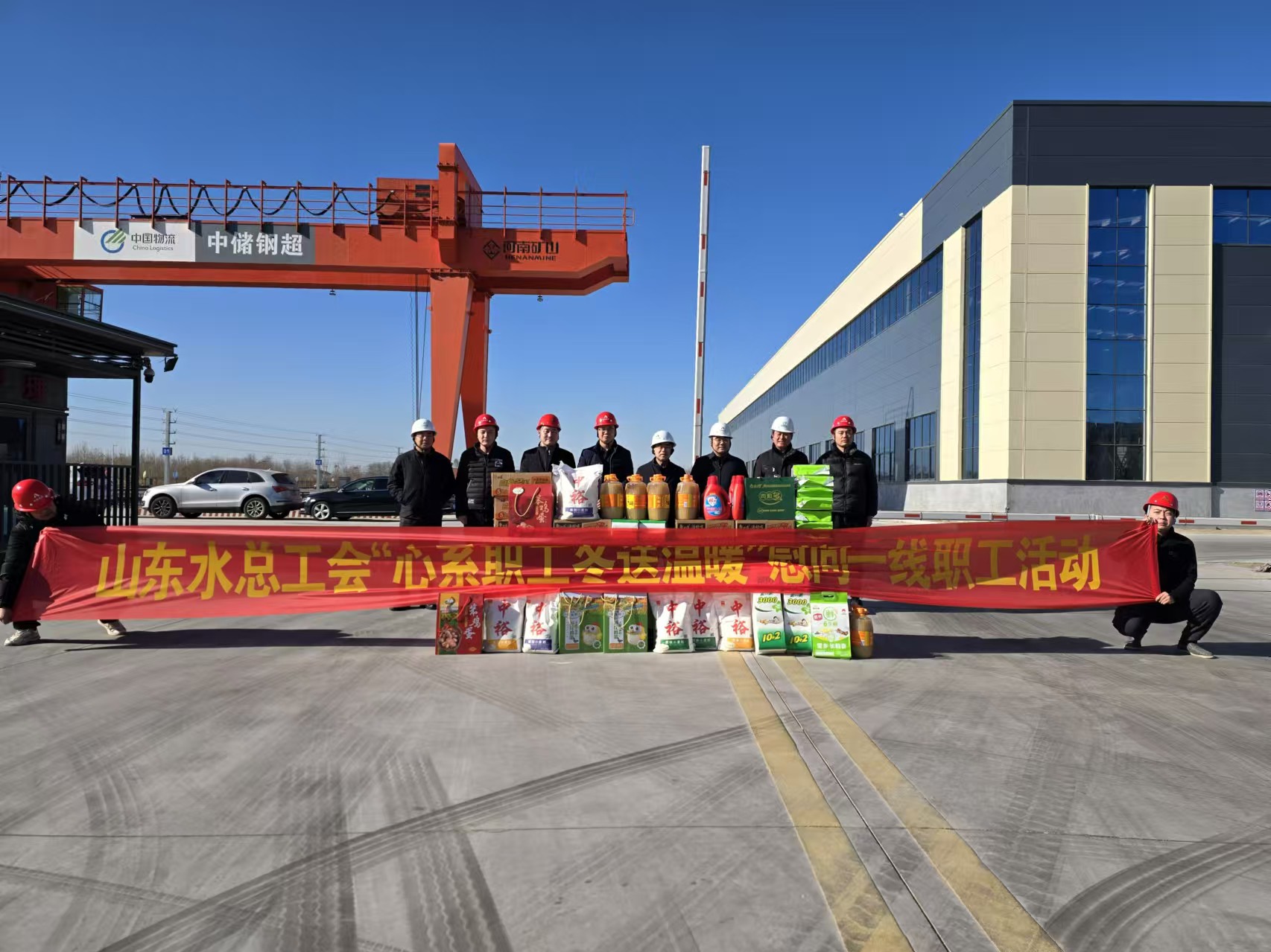 1月8日,公司黨委委員、副總經理袁英杰一行到山東小清河倉儲物流有限公司倉儲物流項目開展“心系職工,冬送溫暖”活動。第五分公司總經理蔡國森陪同。