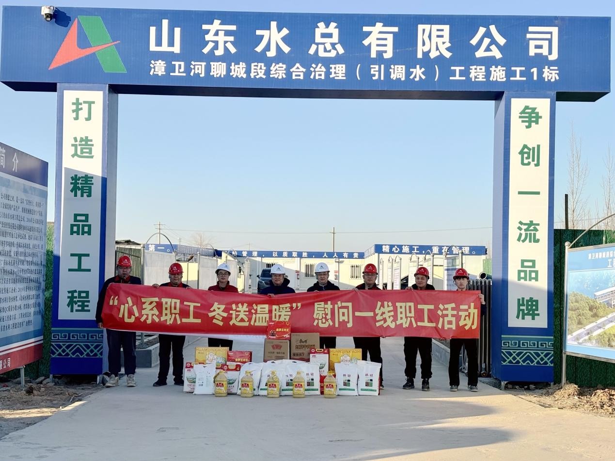 1月9日,公司黨委副書記、職工董事、工會主席王坤林一行蒞臨第二分公司漳衛河聊城段綜合治理(引調水)工程施工1標項目部開展“心系職工,冬送溫暖”慰問活動,黨委組織部副部長王春華、第二分公司副總經理姚忠慧、郝振超陪同。